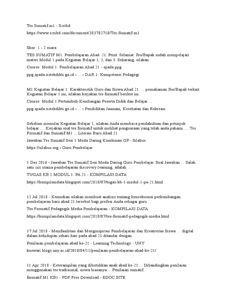 Usaha guru abad 21 yang mampu menciptakan life long education bagi peserta didik tercermin dalam upaya Mengenalkan konsep belajar mandiri 15. Download Soal dan Kunci Jawaban Tes Sumatif Modul IPA Profesional PGSD PPG Dalam Jabatan Tahun 2020. Tes Sumatif modul 2 ini merupakan test contoh soal yang bisa dijadikan referensi bagi mahasiswa peserta ppg dalam jabatan sebelum dalam mengerjakan tes sumatif.