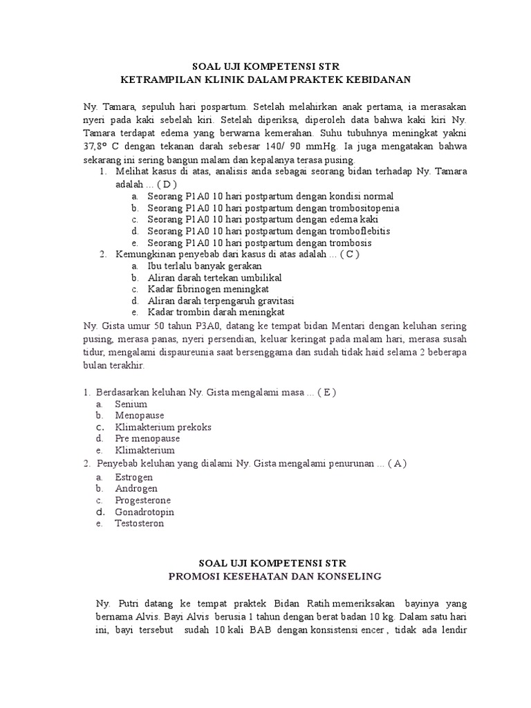 Contoh Soal Uji Kompetensi Bidan Dan Kunci Jawaban Pdf